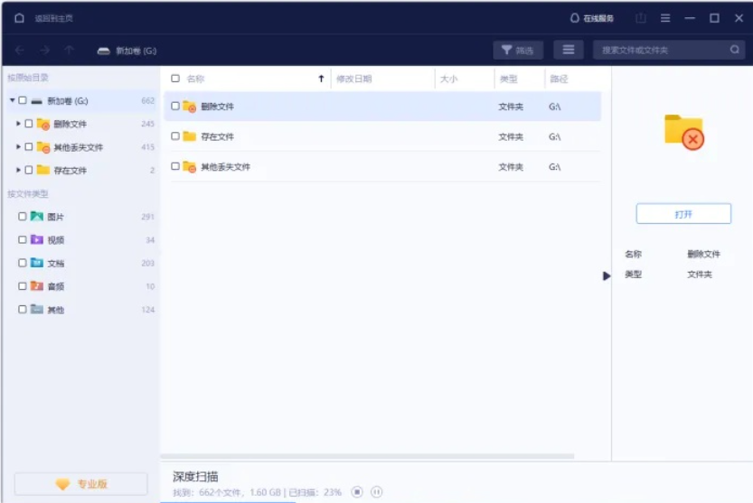步驟二、完成選擇后,點擊“開始”按鈕并掃描所需的文件夾,您可以偶爾暫停并瀏覽它。