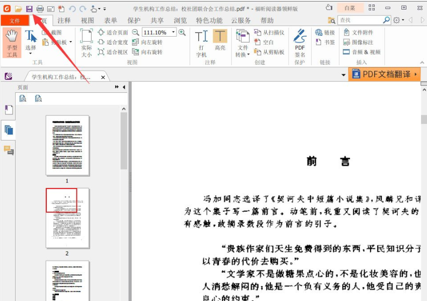 1、福昕pdf閱讀器如何合并文件呢?首先使用福昕閱讀器領鮮版打開需要合并的PDF文檔;