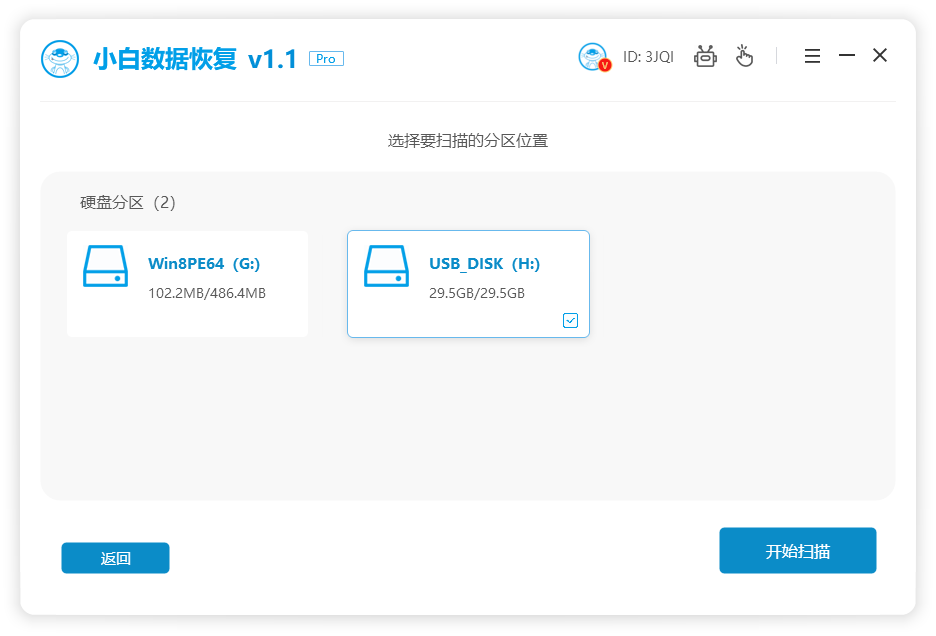 軟件版本:小白數據恢復工具v1.1
