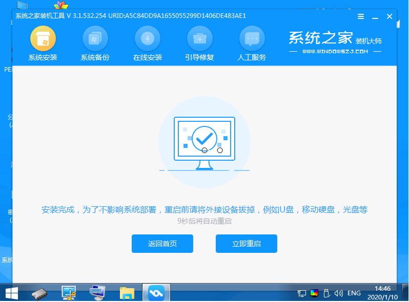 5、安裝完成后,自動會重啟電腦。