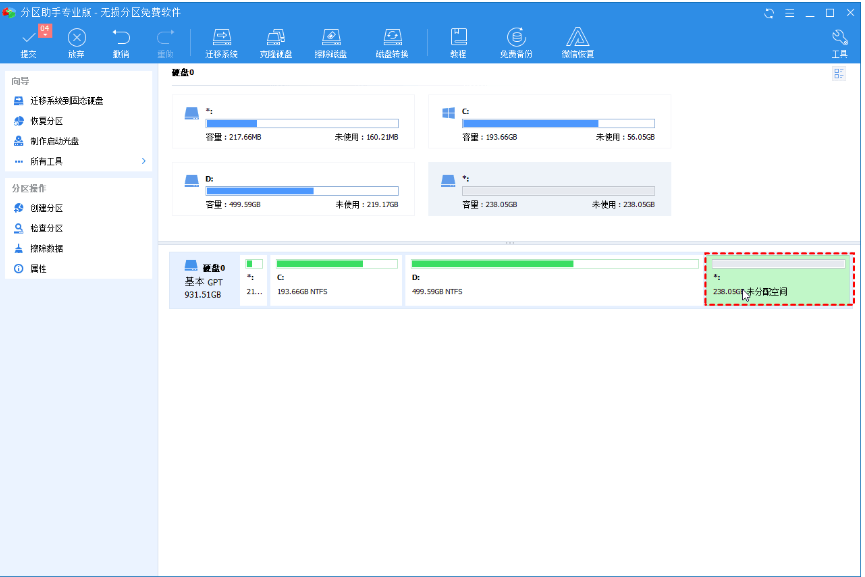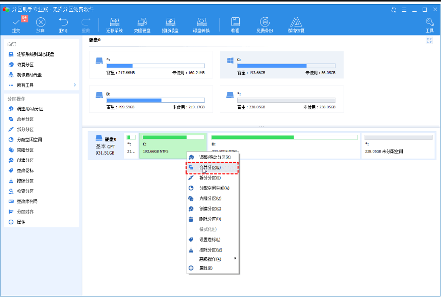 方法三:通過分區助手合并兩個己存在的相鄰分區