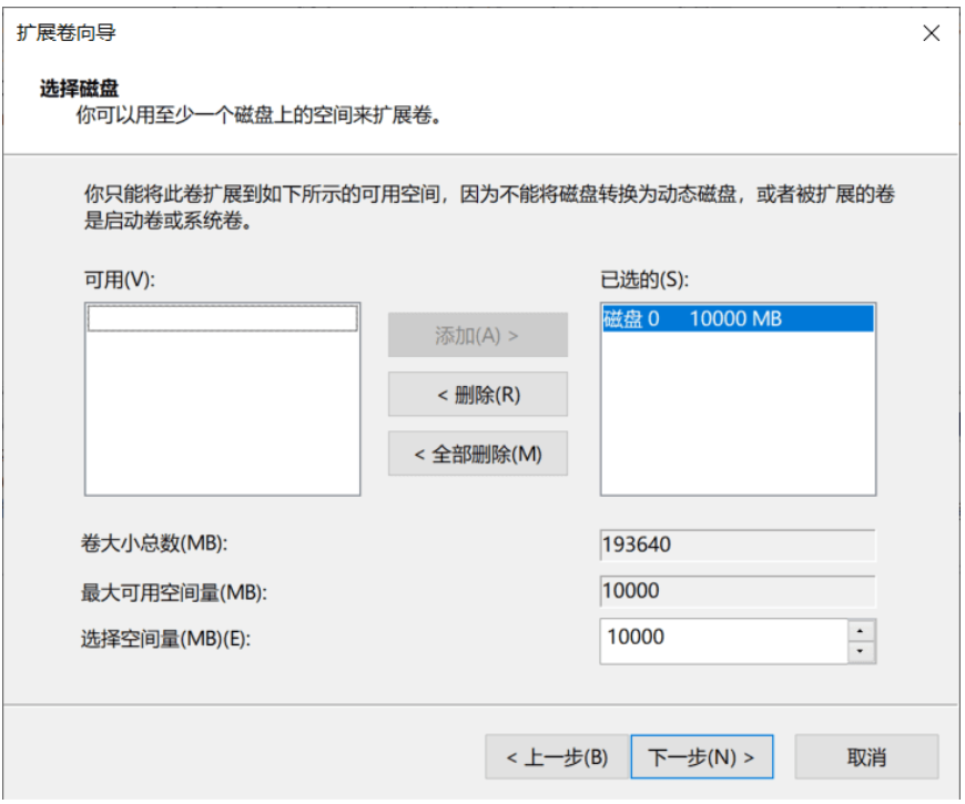 4、 按照擴展卷向導,接受默認選項以合并分區。