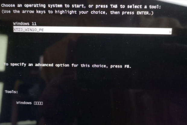 5.重啟系統后,電腦將會進入一個啟動項的選擇,這時我們選擇【XTZJ_WIN10_PE】回車。