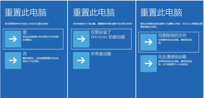 注意事項:如果提示無法重置,或者重置后問題依舊,說明遇到了靠電腦自己無法修復的故障,可以嘗試方法二的借助u盤重裝系統解決。