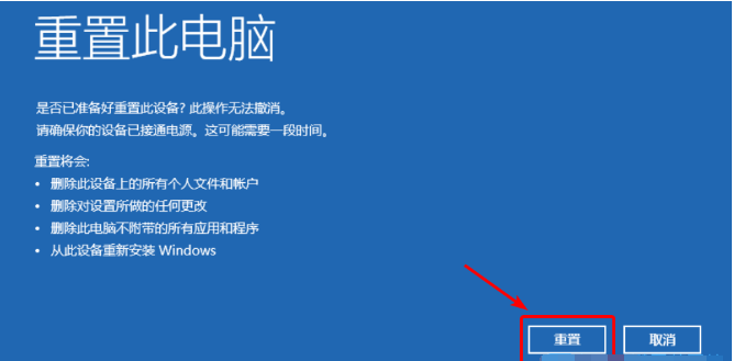 點擊重置后,等待系統重置此電腦了,期間可能會重啟多次,等完成重置即可正常使用。