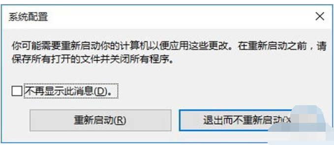 3、 接下來會彈出重新啟動的提示窗口,直接點擊“重新啟動”即可進入“安全模式”,如果此時你還有需要保存的文檔,可以點擊“退出而不重新啟動”按鈕,處理完手邊的事情然后手動重啟進入“安全模式”。