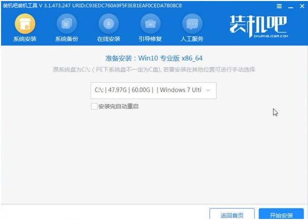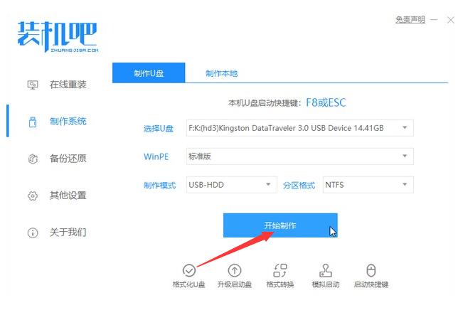 1、瀏覽器搜索裝機吧在線系統重裝工具軟件并打開,選擇制作系統,點擊開始制作。