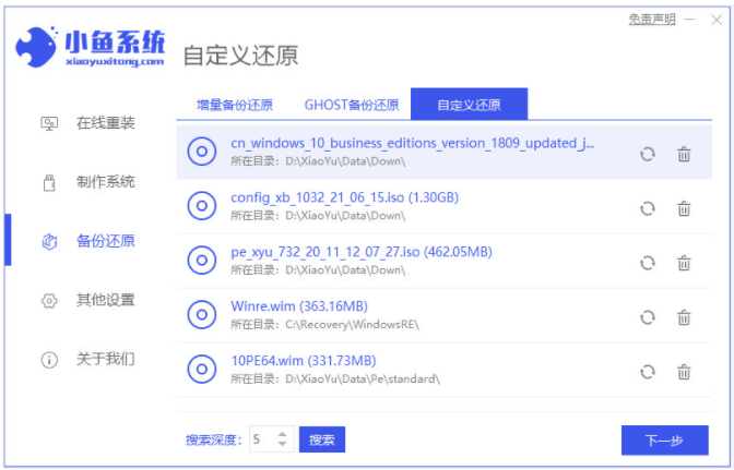 2、然后選擇“自定義還原”,選中要安裝的win10系統鏡像,點擊下一步。