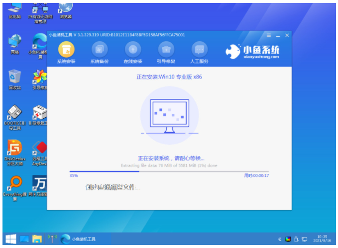 6、在pe系統中打開小魚裝機工具,安裝win10系統。