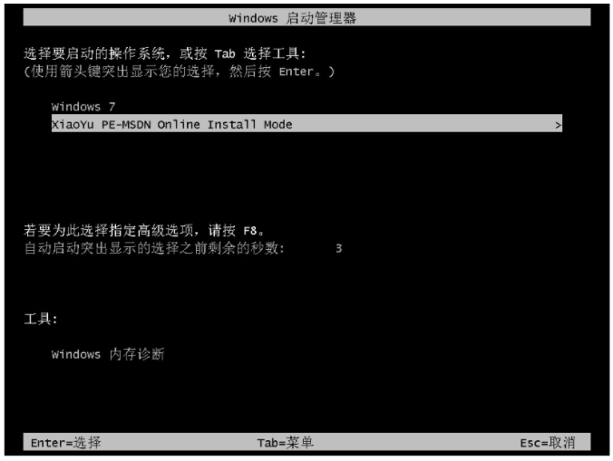 5、進入啟動界面后選擇xiaoyu-pe系統進入。