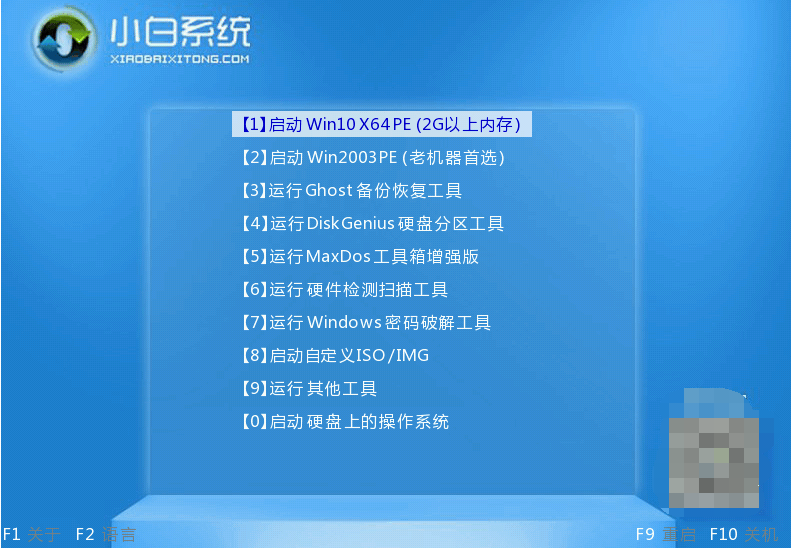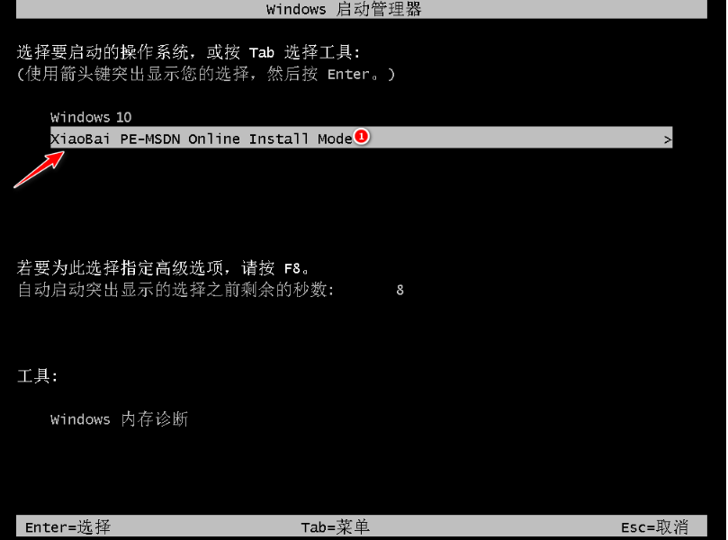 來到開機選項界面,如圖示,選擇第二項進入xiaobai-pe系統。