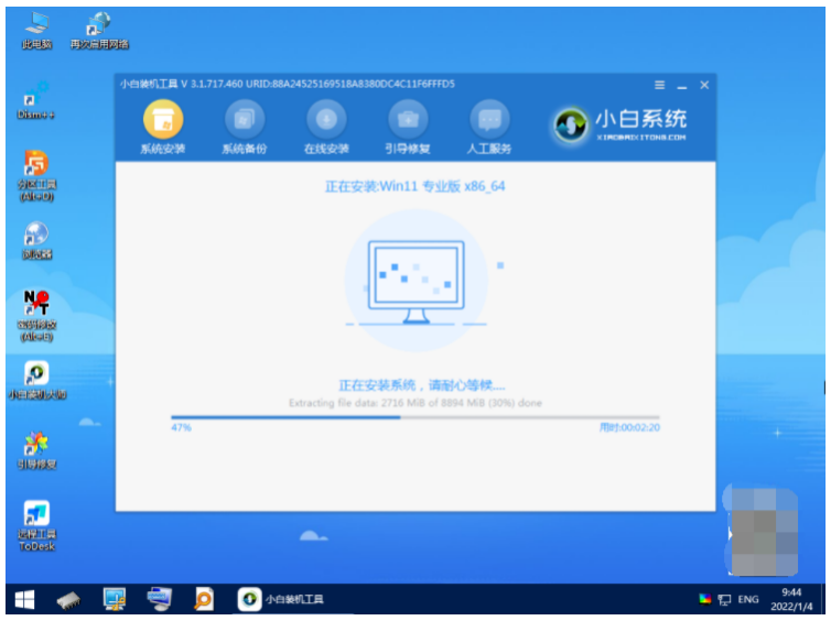 5、小白裝機工具此時將會自動開始進行安裝win11系統,請大家耐心等待。