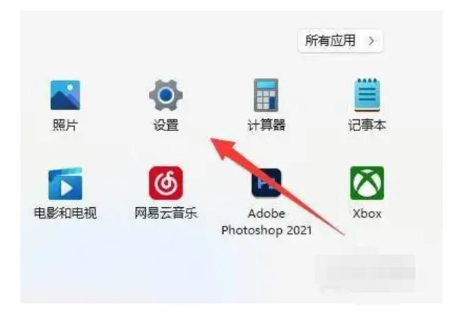 1、打開win11電腦的開始菜單,選擇【設置】選項。