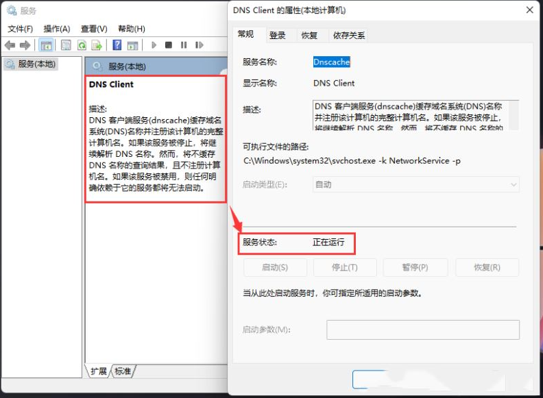 4、如果在執行【ipconfig /flushdns】命令的時候,提示無法刷新 DNS 解析緩存:執行期間,函數出了問題,一般是本地的 DNS Client 服務沒有正常啟動導致的。打開運行框,輸入(services.msc)打開服務界面,找到【DNS Client】的服務,重新啟動即可。