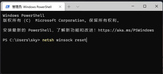 打開Windows 終端 (管理員),輸入命令重置 winsock 目錄。