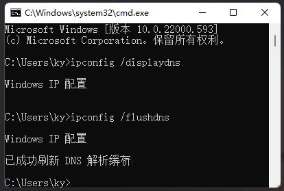 1、打開命令提示符窗口,輸入命令刷新 DNS 解析緩存;