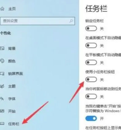 3.切換使用小任務欄按鈕,即可調整任務欄圖標大小。