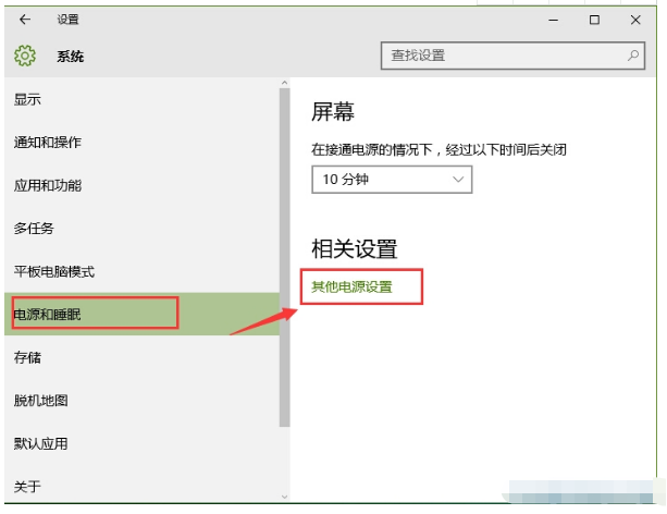 3、接著選擇“電源和睡眠”,并鼠標點擊“其他電源設置”;
