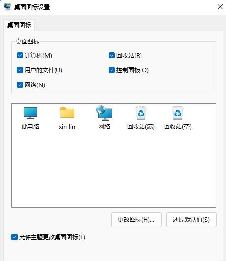 5、桌面圖標設置窗口,就可以看見各種桌面圖標了,【 勾選控制面板 】,然后點擊【 應用確定 】即可。