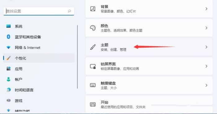3、進入個性化設置后,點擊【 主題(安裝、創建、管理) 】。