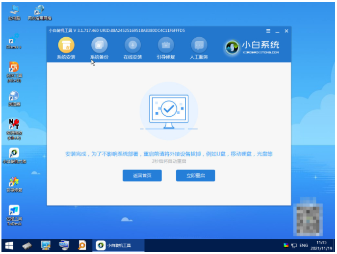3、在pe系統內軟件自動安裝成功后重啟電腦;
