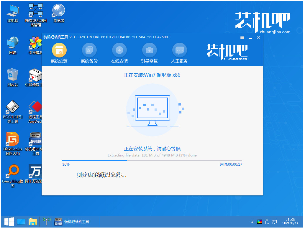 5.進入pe之后,系統會自行開始安裝。
