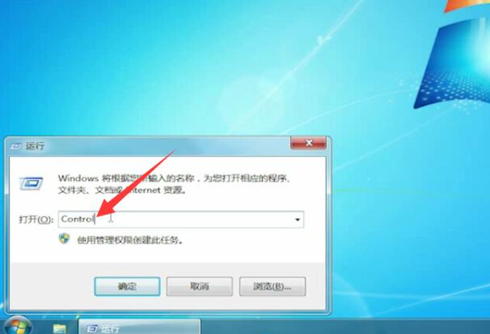 1、win7一鍵還原系統的方法,首先按下windows+R打開運行,輸入control,再點擊回車。