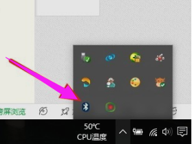 1、鼠標點擊右下角箭頭就會看到一個小藍牙圖標,確認電腦是否有藍牙;