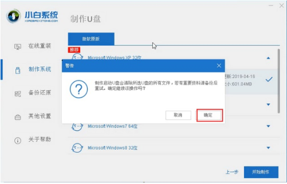 步驟三:此時電腦會彈出格式化U盤操作,我們在確定保存好重要數據以后,單擊“確認”,等待U盤制作完成以后,重啟電腦即可。
