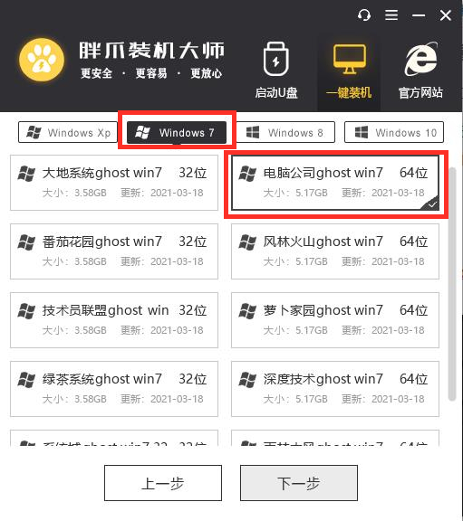 5.選擇需要重裝的windows7系統,點擊下一步。