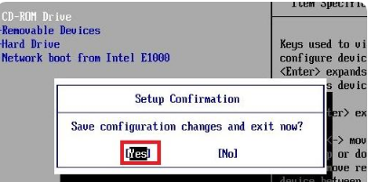 4、按下f10選擇yes然后回車計算機就會重啟了。