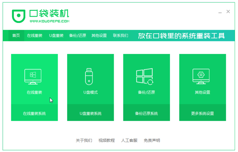 借助口袋裝機工具軟件就可以輕松解決電腦系統怎么裝win7 64位系統的問題,具體方法如下: