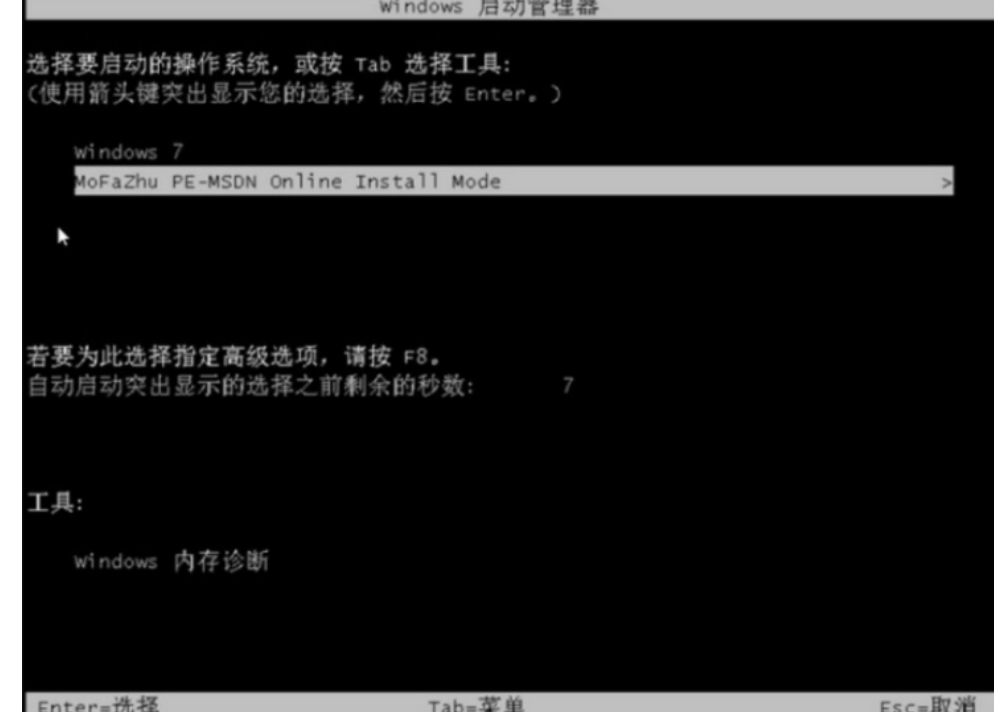 4、在這個頁面我們選擇mofazhu pe-msdn項進入pe系統內。