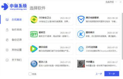 2、選擇需要安裝的應用軟件,點擊下一步,等待軟件下載系統鏡像以及備份驅動等資料。