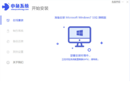 1、下載安裝小魚系統工具然后打開,點擊在線安裝,選擇安裝系統,點擊下一步。