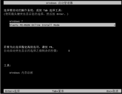 9、進入啟動管理器界面之后,選擇windows7,按回車進入即可。