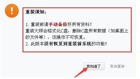 3、360重裝系統大師工具在重裝系統時,將會重置電腦C盤,需要我們及時做好資料備份。
