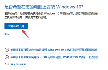 2、進入微軟官網后,在主頁面上點擊“立即下載工具”按鈕。