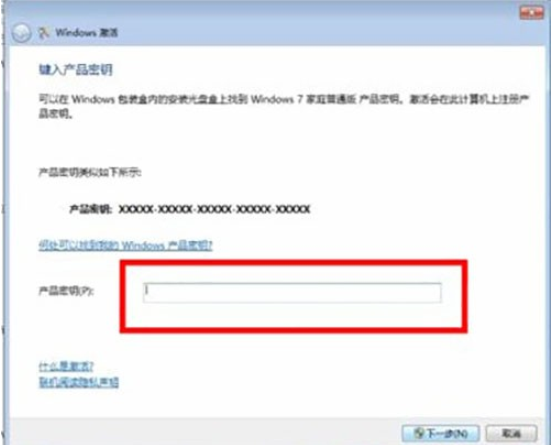 3、輸入win7專業版產品密碼,點擊【下一步】,根據默認設置操作,等待系統激活。