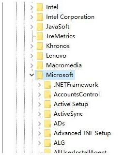3、依次展示【HKEY_LOCAL_MACHINE、SOFTWARE】。