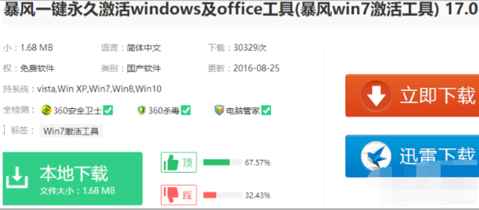 1、首先關閉電腦殺毒軟件,百度搜索下載暴風激活工具并安裝。