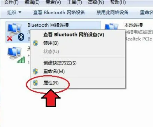 4、進到頁面電腦鼠標右鍵,點擊藍牙,發生對話框,點擊【屬性】。