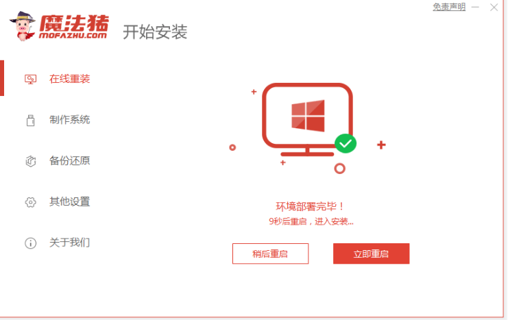 3、部署環境完成之后,點擊立即重啟電腦。