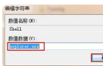 5.找到并雙擊“shell“項,將數據數值修改為“explorer.exe”,點擊確定保存就可以了。