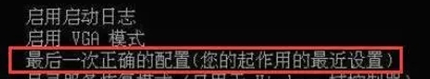 我們重啟電腦,但是重啟后立即長按鍵盤“F8”按鍵進入高級設置。在高級系統菜單中選擇“最后一次正確的配置”。