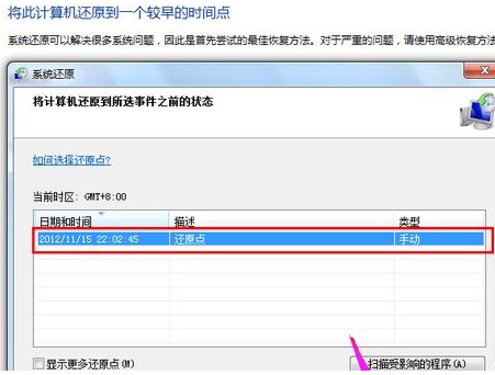 6.此時會彈出窗口,需要我們選擇一個還原點進行還原的操作,我們選擇最近的一個還原點即可。