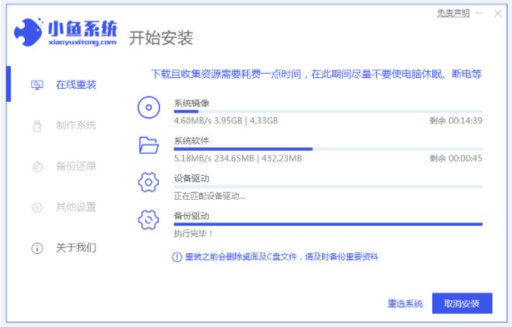 3、下載完成之后小魚軟件此時將會自動進入部署安裝環境中,耐心等待。