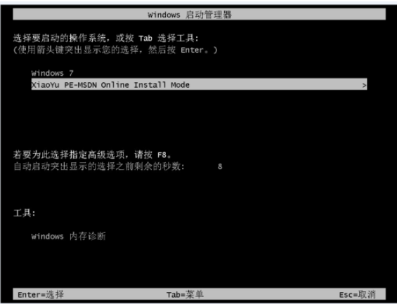 5、重啟電腦之后會出現Windows啟動管理器界面,如下圖所示,選擇第二項按回車鍵進入PE系統。