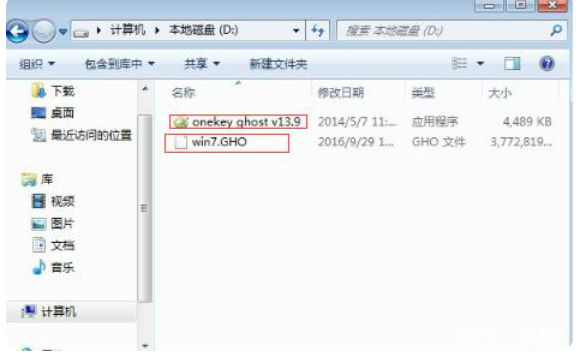 2.接著將最大的win7.gho文件以及Onekeyghost工具放在同一目錄中;