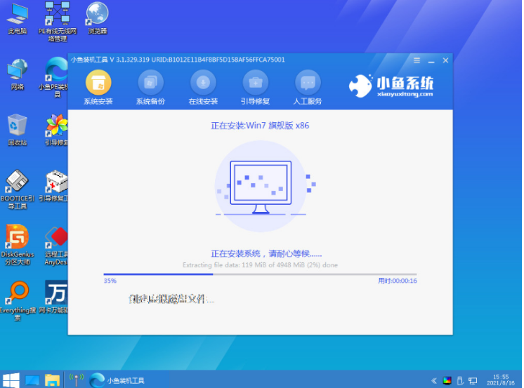 5、進入到pe系統后,小魚裝機軟件此時將會自動安裝win7系統。